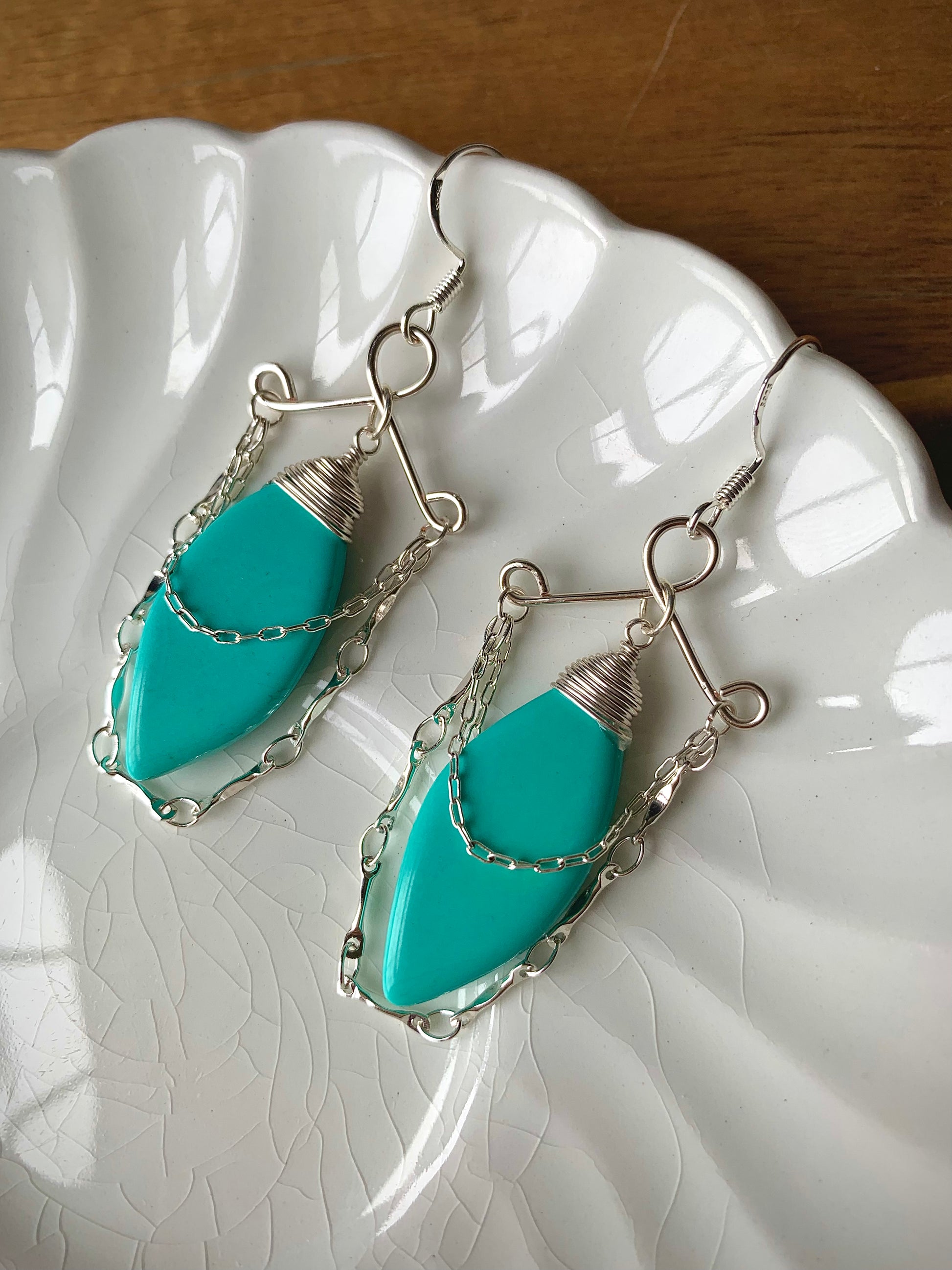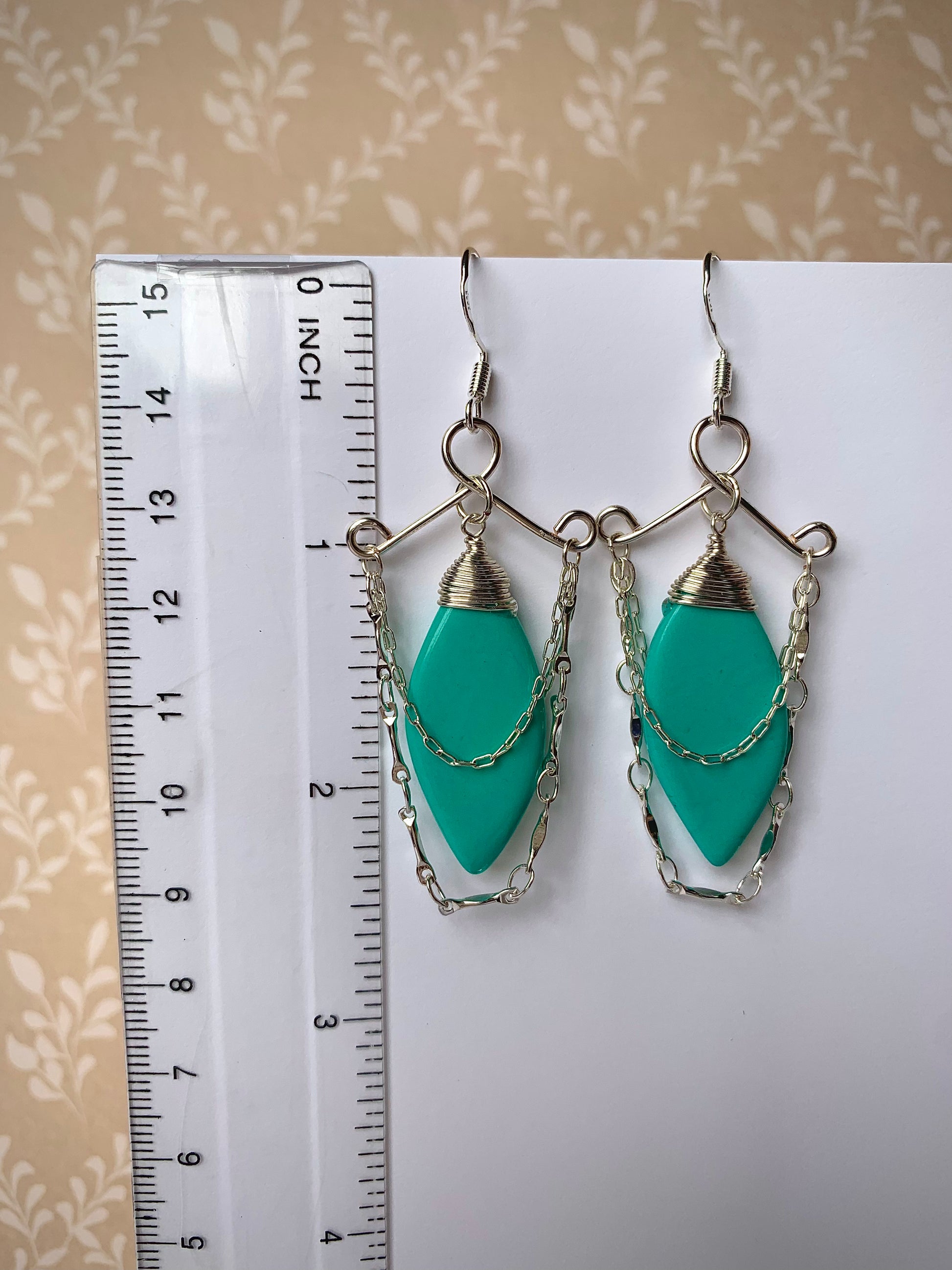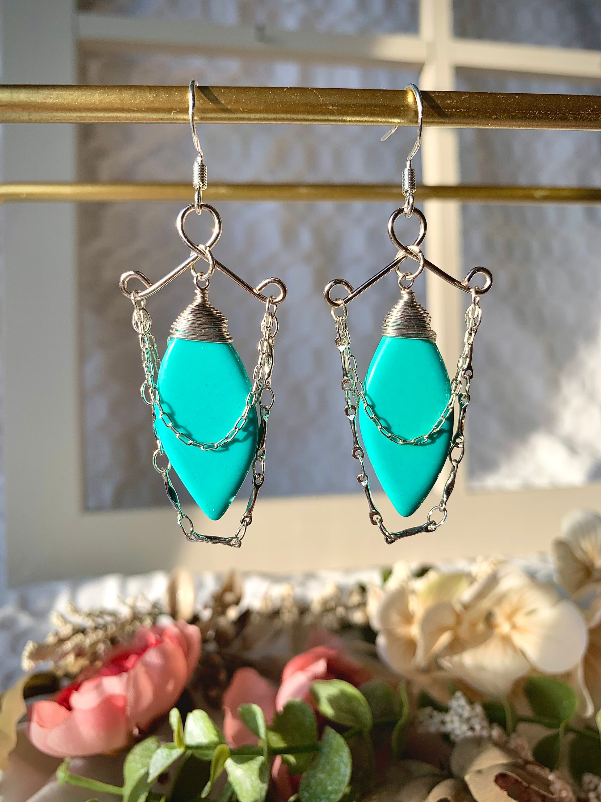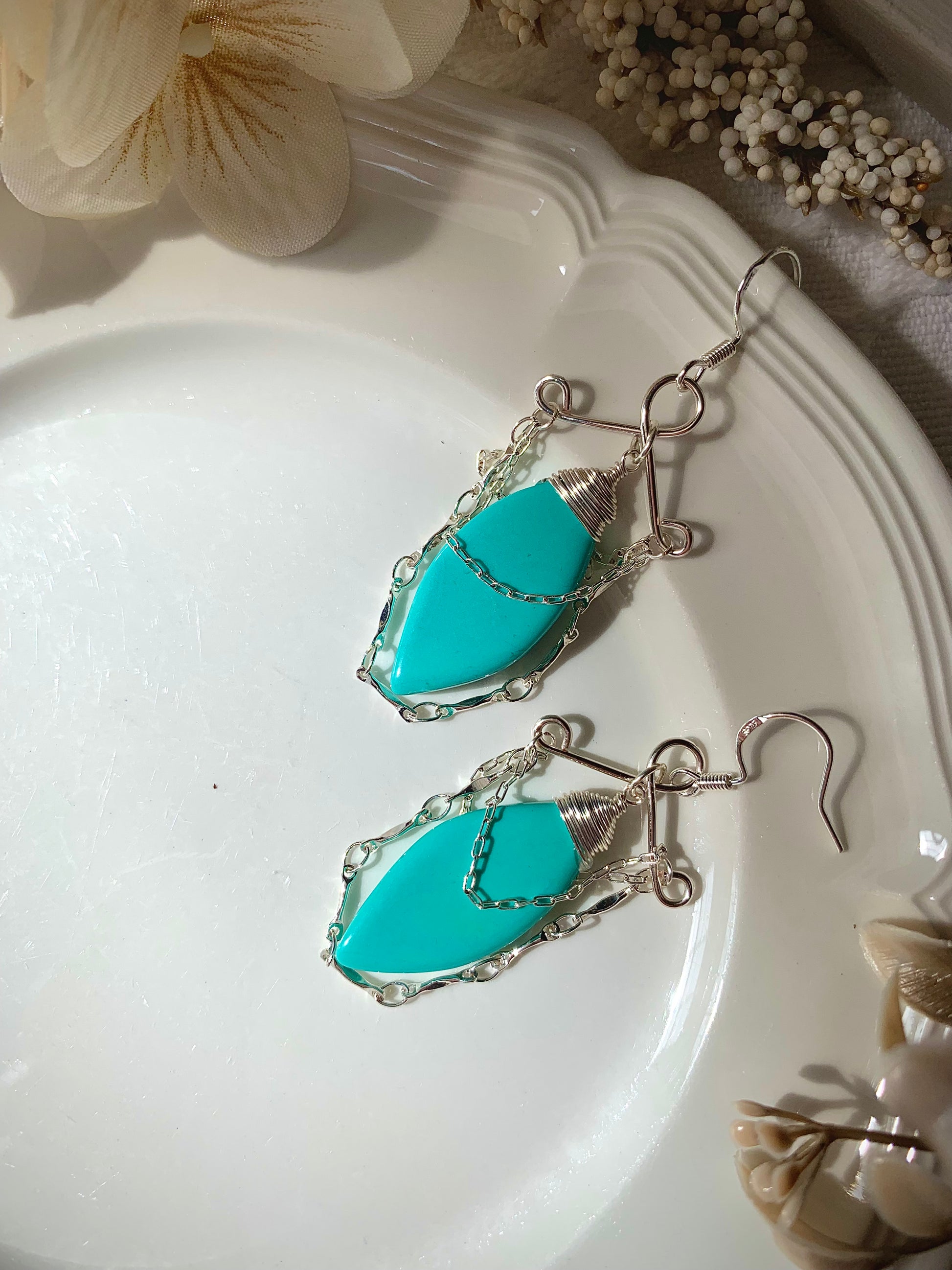 A deep ocean-blue jewel is cradled in delicate silver chains that sway like ripples across enchanted waters. Elegant and serene, these earrings carry the quiet magic of the sea.