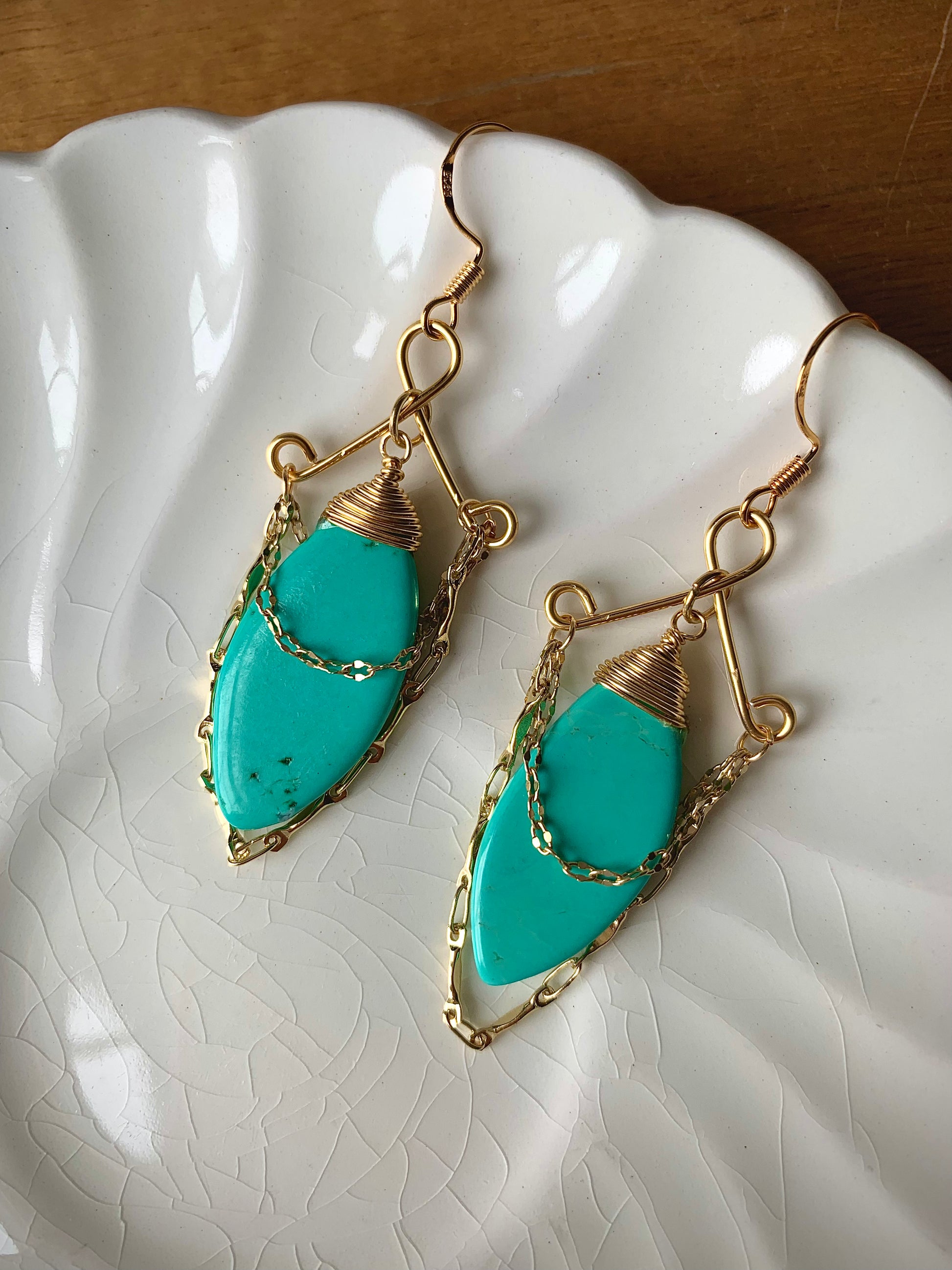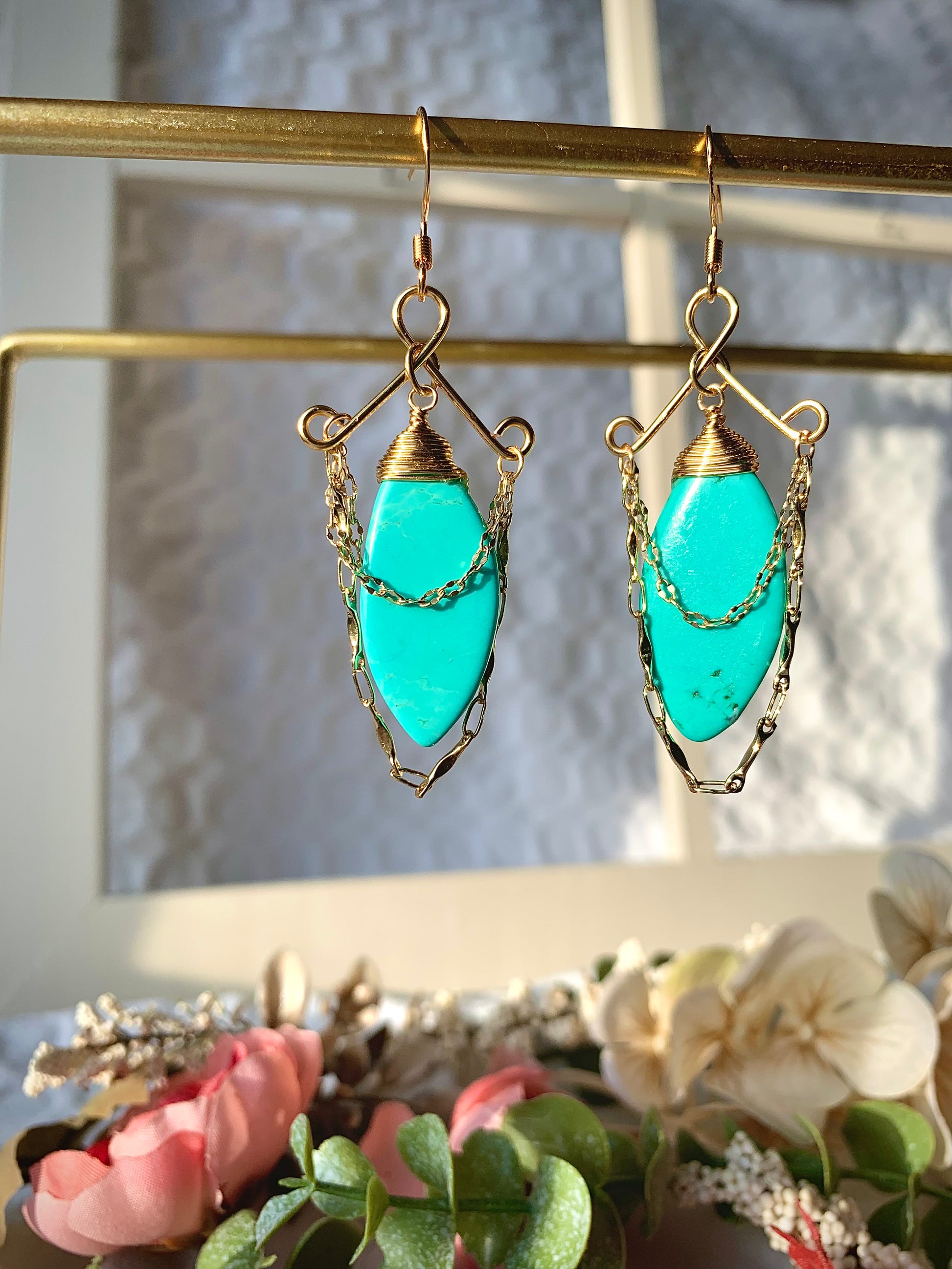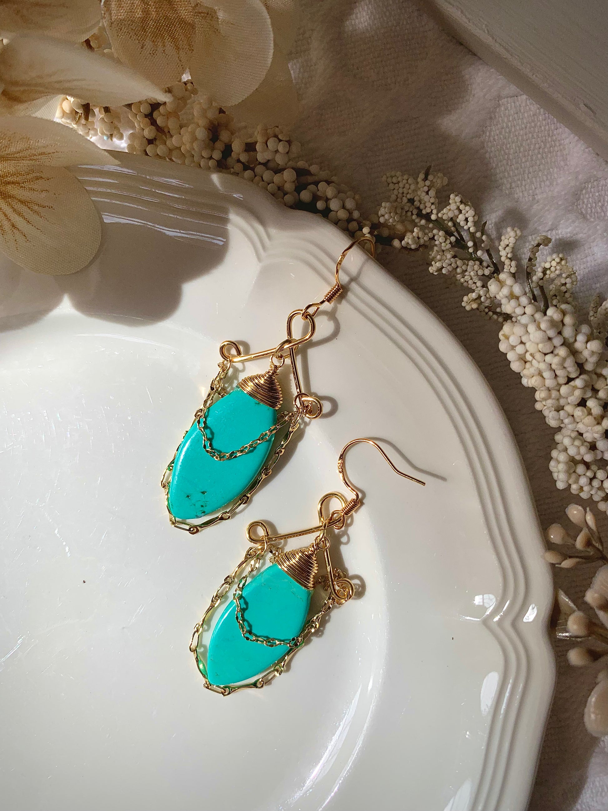 Like moonlight cast upon a hidden garden fountain, a blue stone shimmers within golden vines. Dreamlike and serene, these earrings hold the quiet magic of a secret pool where wishes linger in the water’s glow.