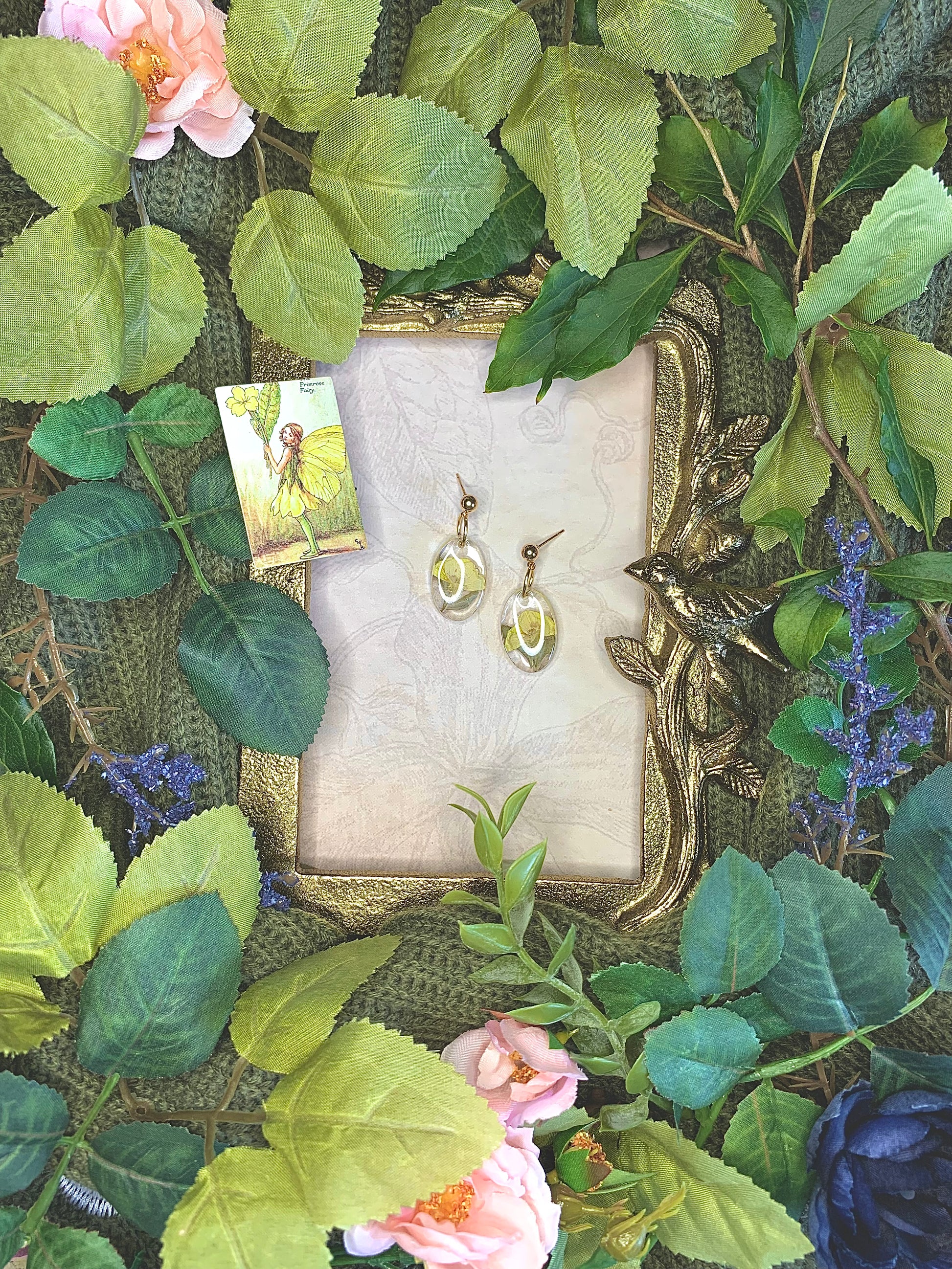 With a gentle smile and a hint of blush, the little Primrose Fairy holds her blossom proudly. These delicate earrings mirror the tender beauty of the primrose, capturing the grace of spring’s earliest blooms.